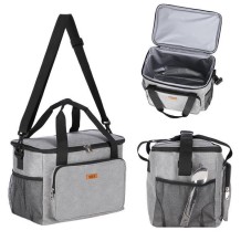 Wykonana z wytrzymałego materiału 600D Oxford i wyłożona izolacyjnym PEVA, główna komora zapewnia doskonałą ochronę termiczną. Torba oferuje też dodatkową przestrzeń dzięki dwóm bocznym kieszeniom z siatki i przedniej kieszeni na zamek, idealnej do przechowywania przedmiotów, które nie wymagają izolacji termicznej.