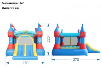 Zamek jest wyposażony w specjalną siatkę zabezpieczającą, która chroni dzieci przed wypadnięciem, co pozwala opiekunom spokojnie cieszyć się chwilą. Produkt nadaje się zarówno do użytku w ogrodzie, jak i w pomieszczeniach, a jego rozłożenie zajmuje zaledwie 5 minut