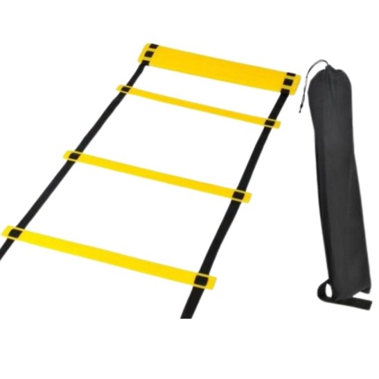 Drabinka koordynacyjna pozwoli podnieść intensywność treningu. Szczebelki są dobrze widoczne. Regulacja odstępów pomiędzy szczebelkami pozwoli dopasować ćwiczenia do stopnia zaawansowania, wzrostu i wieku. Całość została zapakowana w pokrowiec ze sznurkiem ściągającym i regulowanym paskiem na ramię.